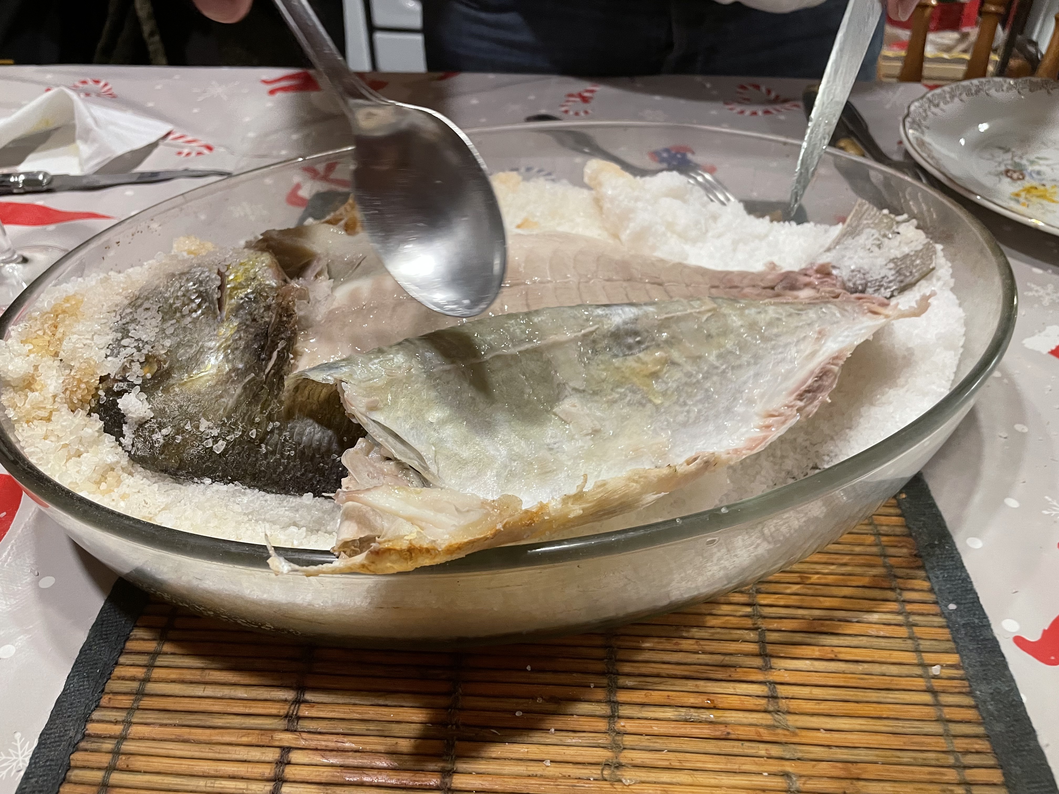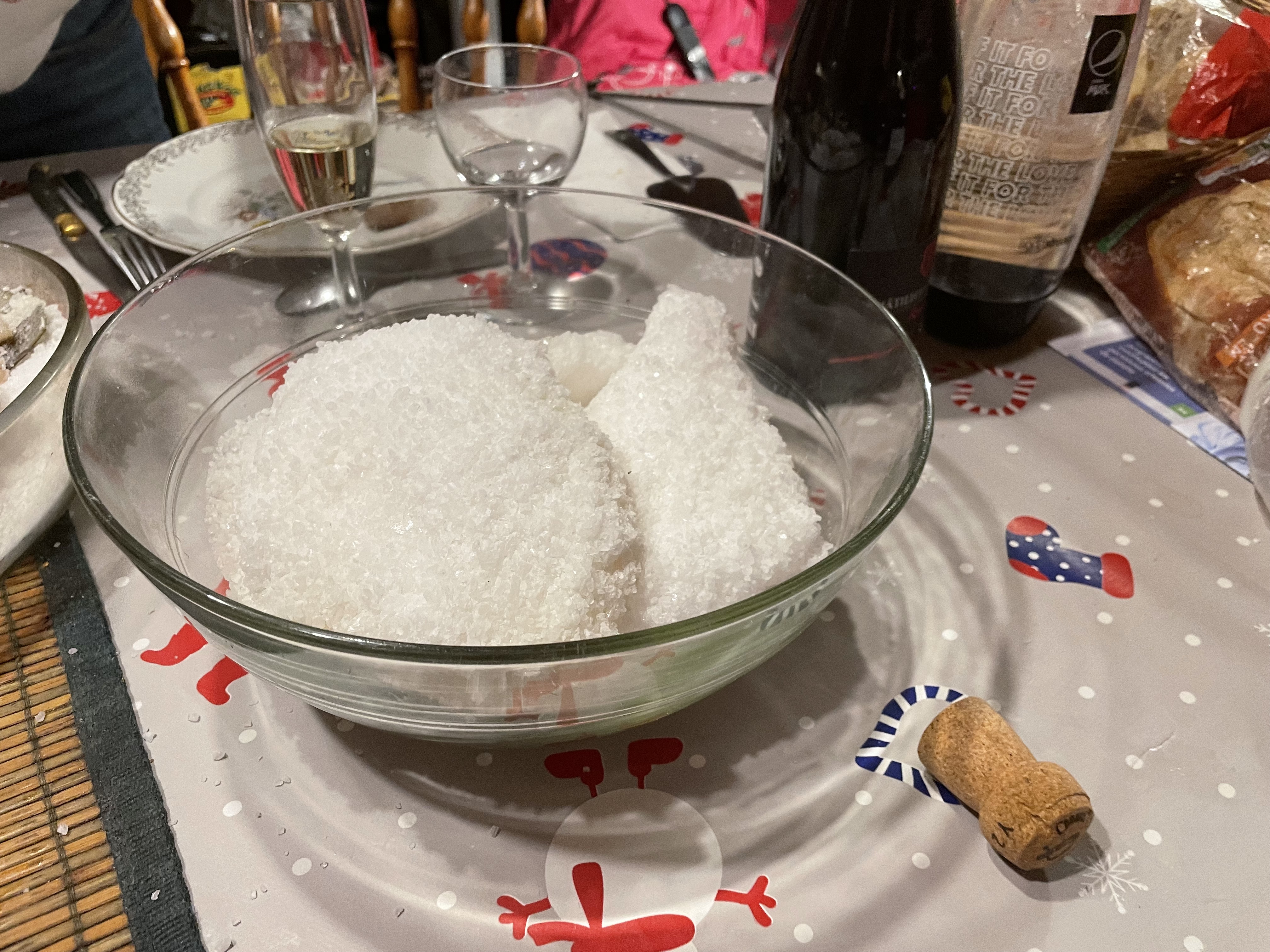 Comme on voulait faire des repas qui sortaient de l'ordinaire pour les fêtes de fin d'année, mon ami Christian m'a proposé de faire une dorade au gros sel !