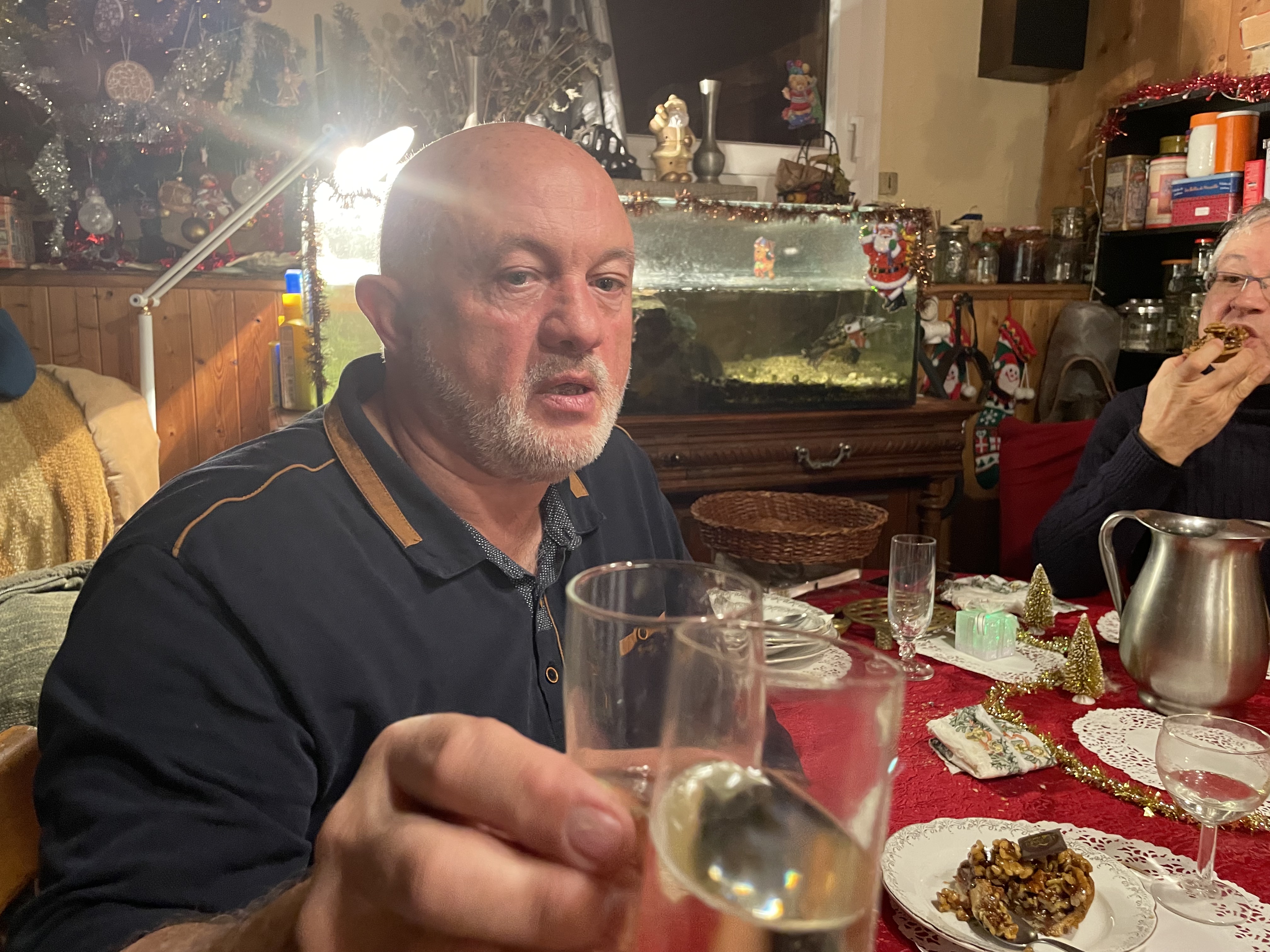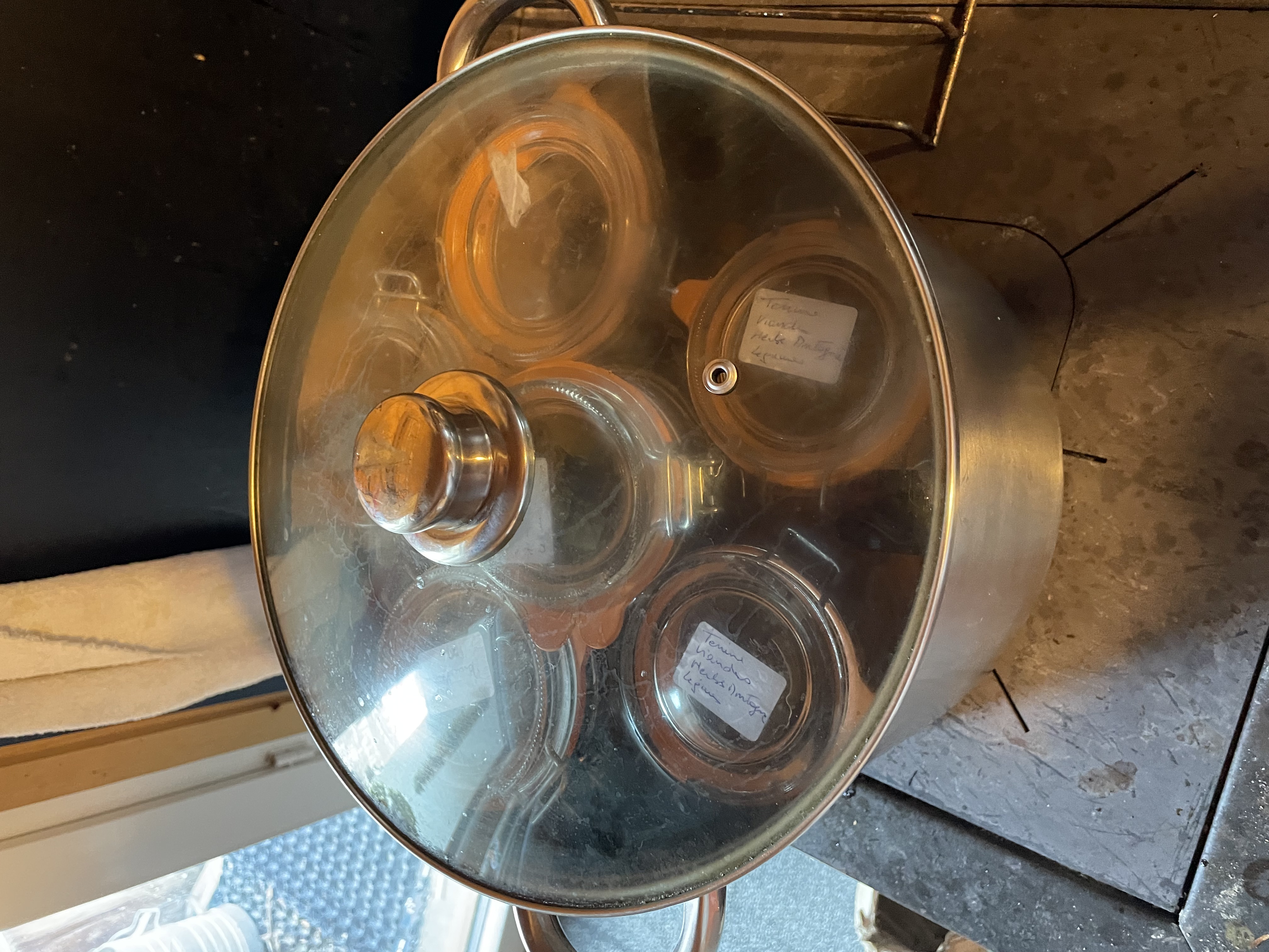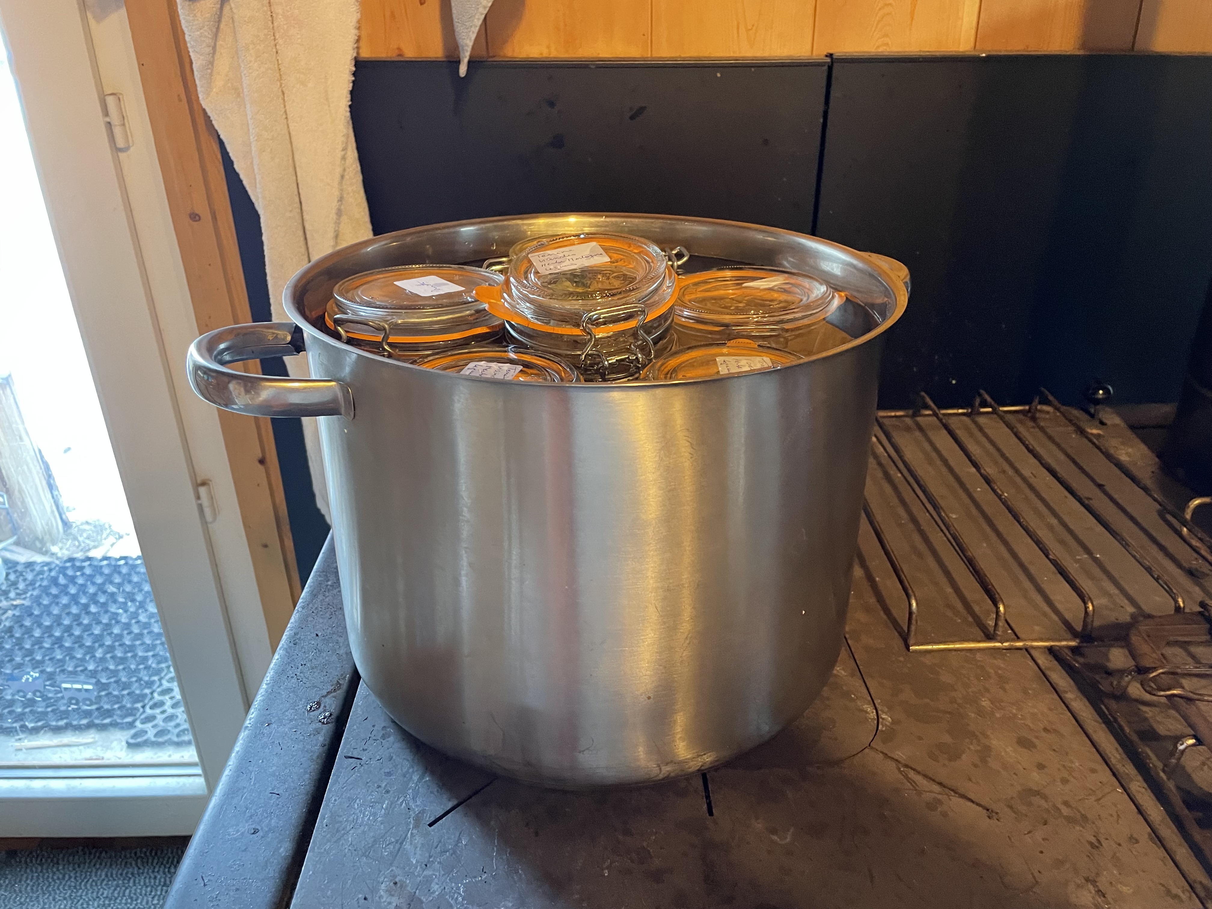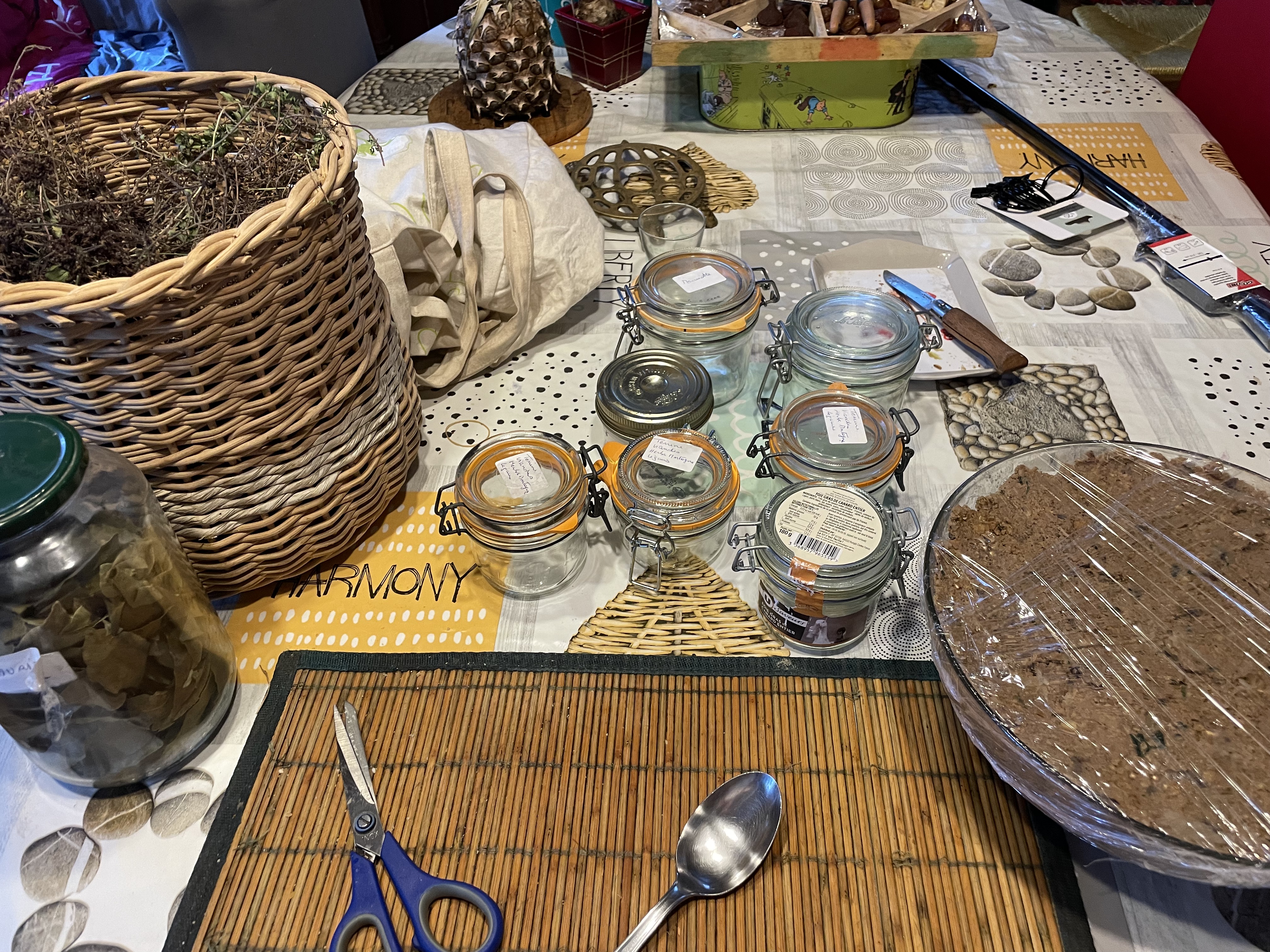 Donc, avant que mes invités de fin d'année arrivent, il s'est entraîné à faire ce plat, cuit dans ma cuisinière à bois ! Et tant qu'à faire de s'entraîner, on a aussi goûté le champagne ! Maintenant que tout le monde est reparti, moi, je me suis mise dans la préparation des terrines ! Pour cette année, comme mon chasseur n'a pu que tué une seule marmotte, j'ai donc rajouté, pour innover, de la pintade ! Aujourd'hui, je les ai mise en pot et stérilisé sur manouchcka ! Demain ce sera les étiquetages et le rangement ! La semaine prochaine, je m'attaquerai, probablement, au morceau de sanglier que Joël de Die m'a apporté pour transformation en terrines ! J'ai l'air de passé mon temps en cuisine mais durant mes années d'activités, je ne mangeais la plupart du temps, que dans les restaurants en l'Europe, lors de mes rapatriements, le matin, midi et soir ! La retraite, c'est fait pour cela aussi ! Des petites préparations pour offrir et partager avec la famille et les amis ! C'est mon truc à moi !