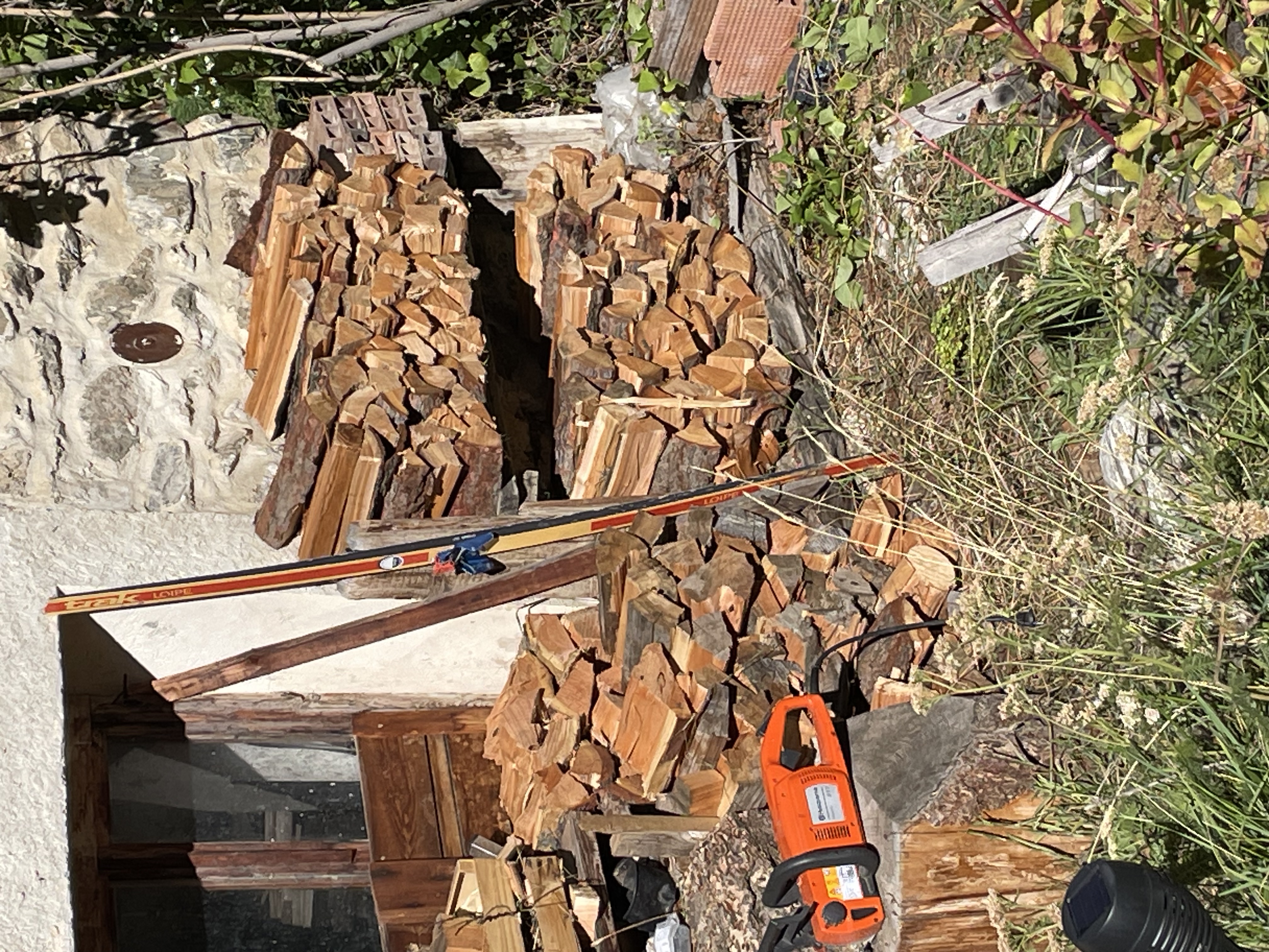 Il faut bien que j'avance dans mon travail pour avoir chaud cet hiver ! Certains morceaux sont trop lourd pour moi et quelque fois si j'insiste trop mon ancienne déchirure musculaire de l'an passé me rappelle qu'il faut que j'y aille un peu plus mollo ! Certes un petit massage le soir serait le bien venu mais il faut que je me contente d'une douche chaude pour soulager mon dos ! Mais j'y arrive en étant dans l'alternance ! J'ai attaqué le côté près de l'entrée de la cave et c'est bien ! Quand il pleut c'est donc jour de repos pour le bois alors je m'active dans mes préparations avec les orties, les épinards sauvages, la menthe, l'hysope et les quelques pissenlits qui sont encore là ! Dame Fourmi sera heureuse d'offrir ou de faire goûter les sirops, les infusions et les soupes d'herbes et autres cet hiver. Excellents remèdes naturels qui est plus efficace que certains autres synthétiques achetés en pharmacie !