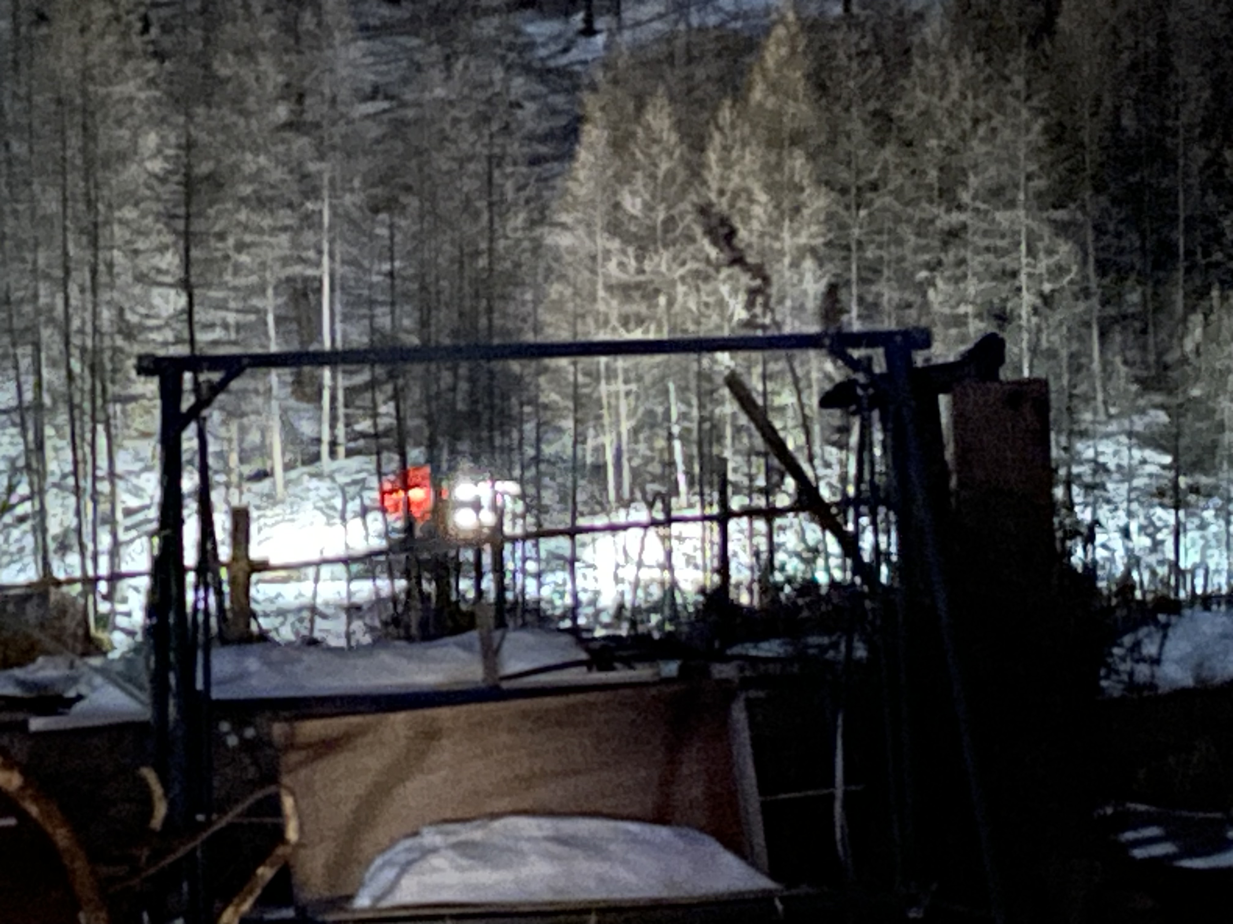 Dans la nuit, en face certains jours de la semaine, la dameuse passe dans le chemin forestier pour rendre la piste magnifique pour les skieurs de fond !