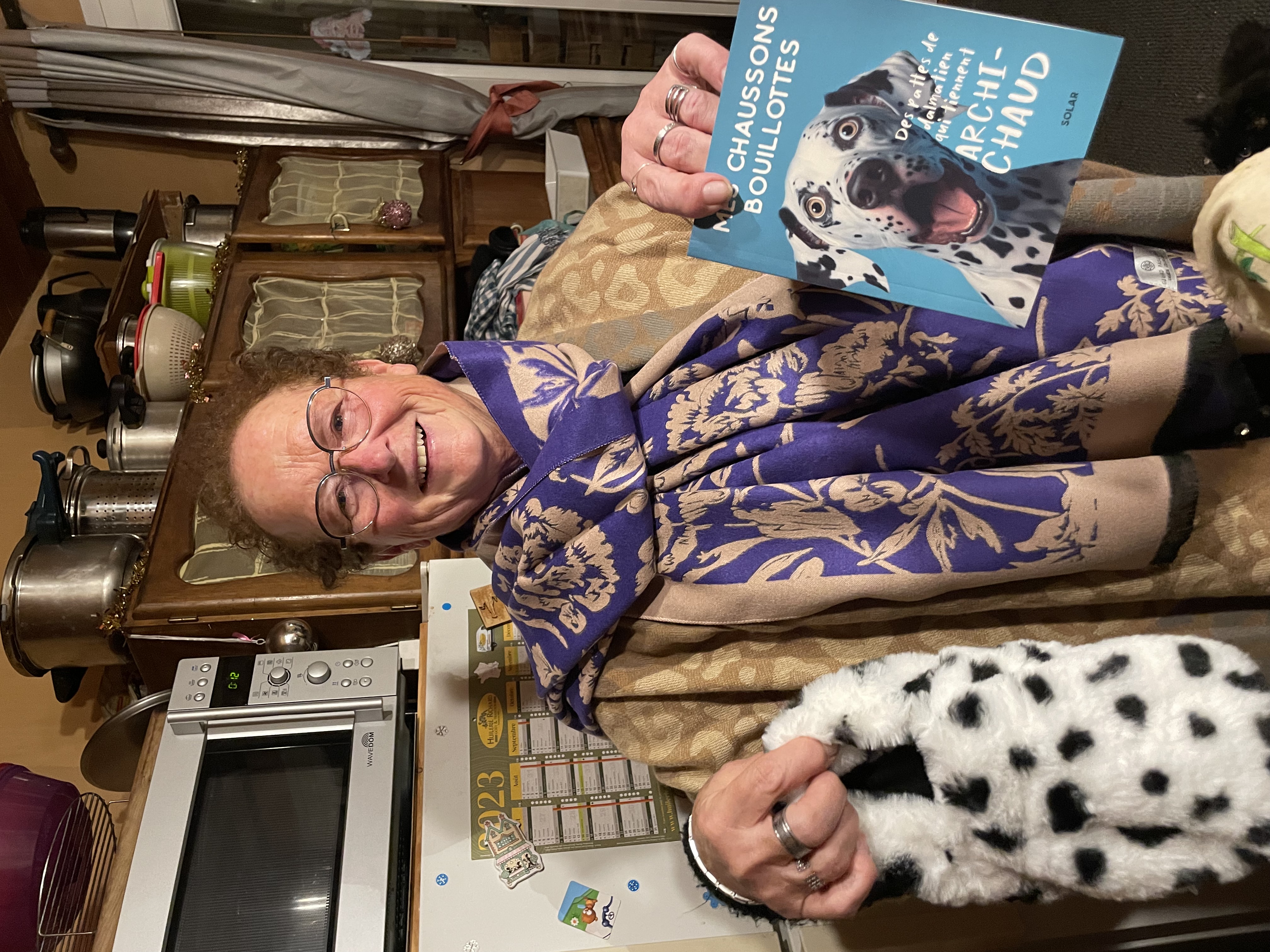Moi qui disait que je ne m'étais pas remise à l'écriture car j'avais souvent froid devant mon ordinateur, sans se concerter, ils m'ont offert des vêtements chauds, comme la doudoune jaune par Joël de Die, le jeté d'épaule par Christian, l'écharpe en cachemire par Ly'ang et des chaussons qui se réchauffent au micro ondes par Nicolas ! C 'est vraiment amusant et super chaud !