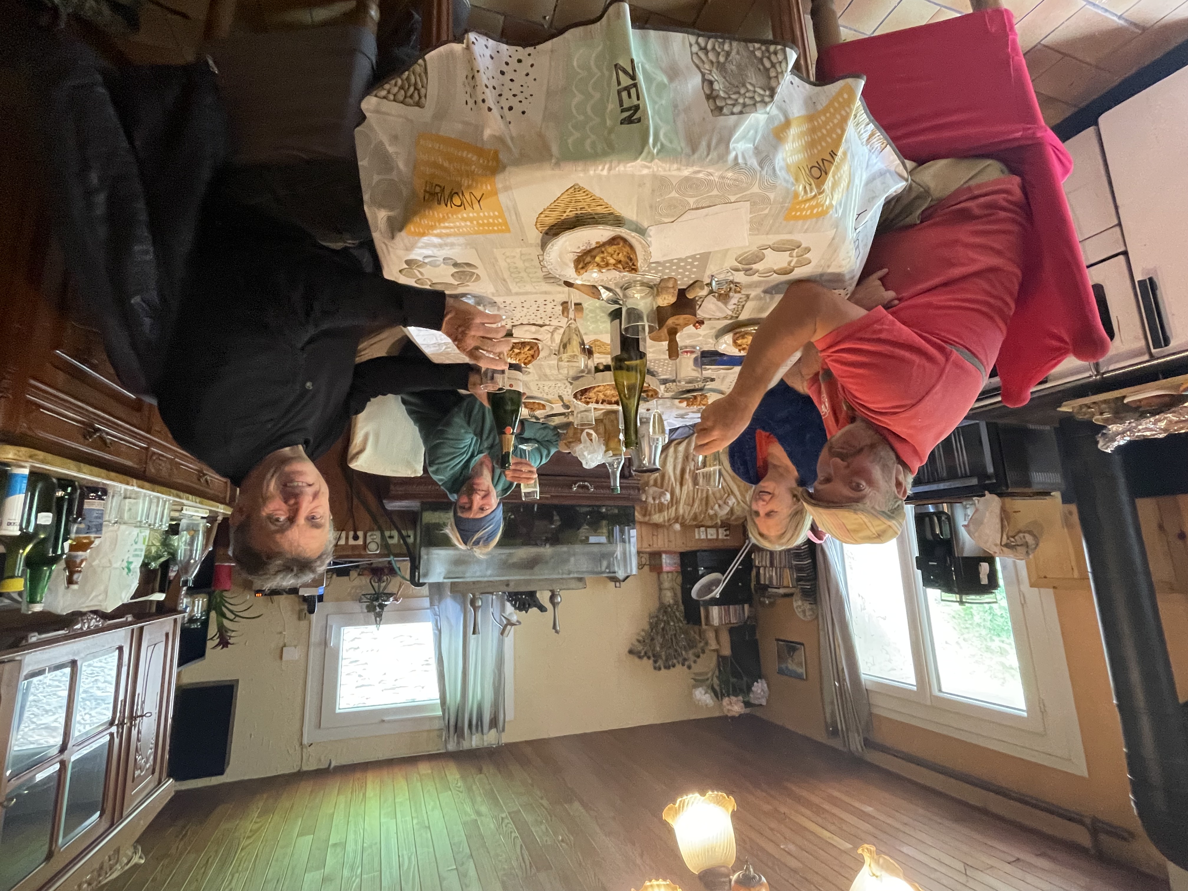 Cette année après quelques problèmes de santé, il y a des choses que je ne peux réaliser ! Mais je peux dire que j'ai beaucoup de chance car lorsque j'ai un problème mes amis se mobilisent pour venir ! Que ce soit pour le bois, le jardin, et autres ils sont là et je m'en réjouis car pour une femme seule, je rencontre parfois des problèmes et bien volontiers ils viennent m'aider ! Alors, il est bien normal que nous profitions d'être ensemble pour aussi partager de très bons moments ensemble !