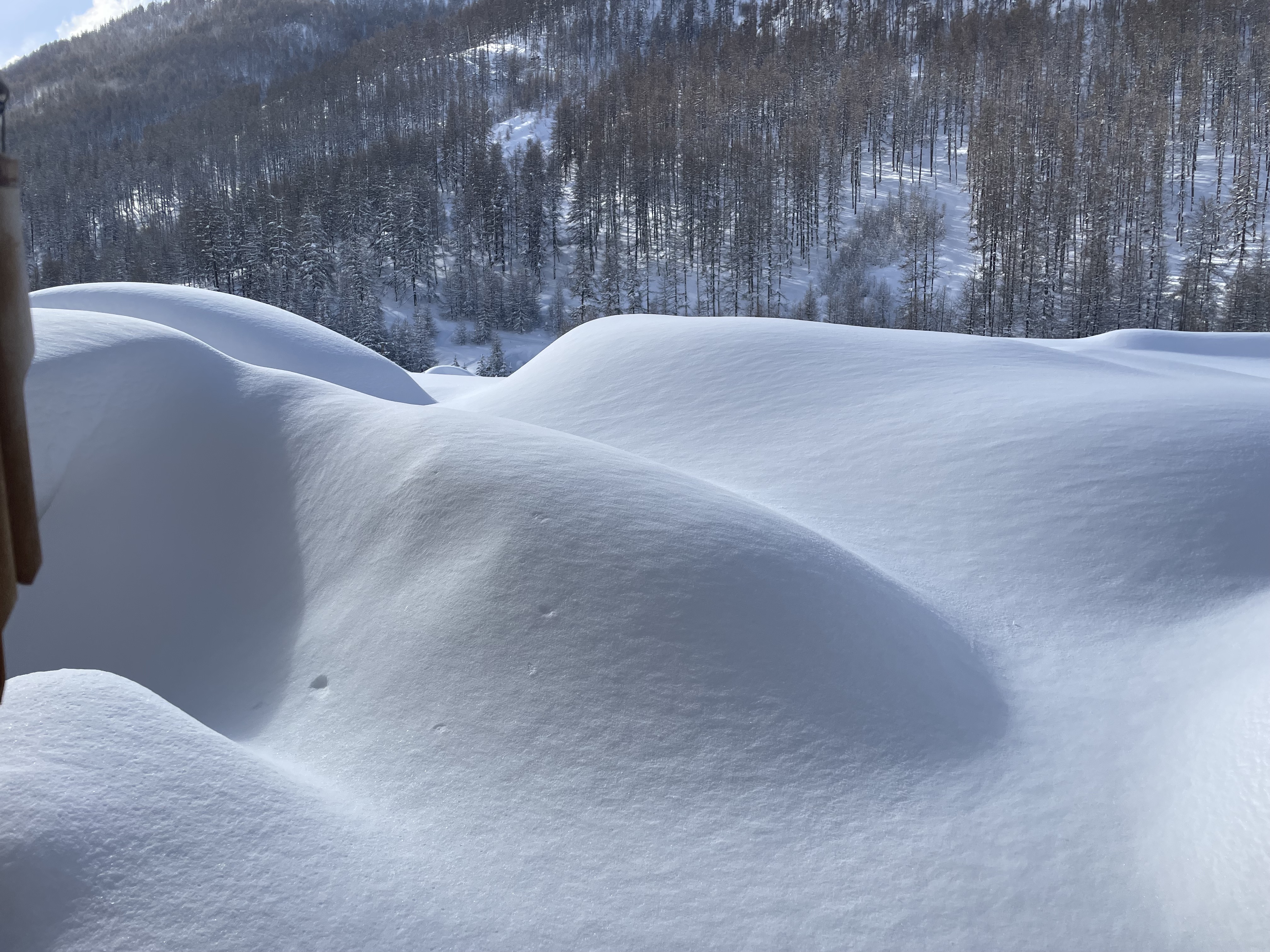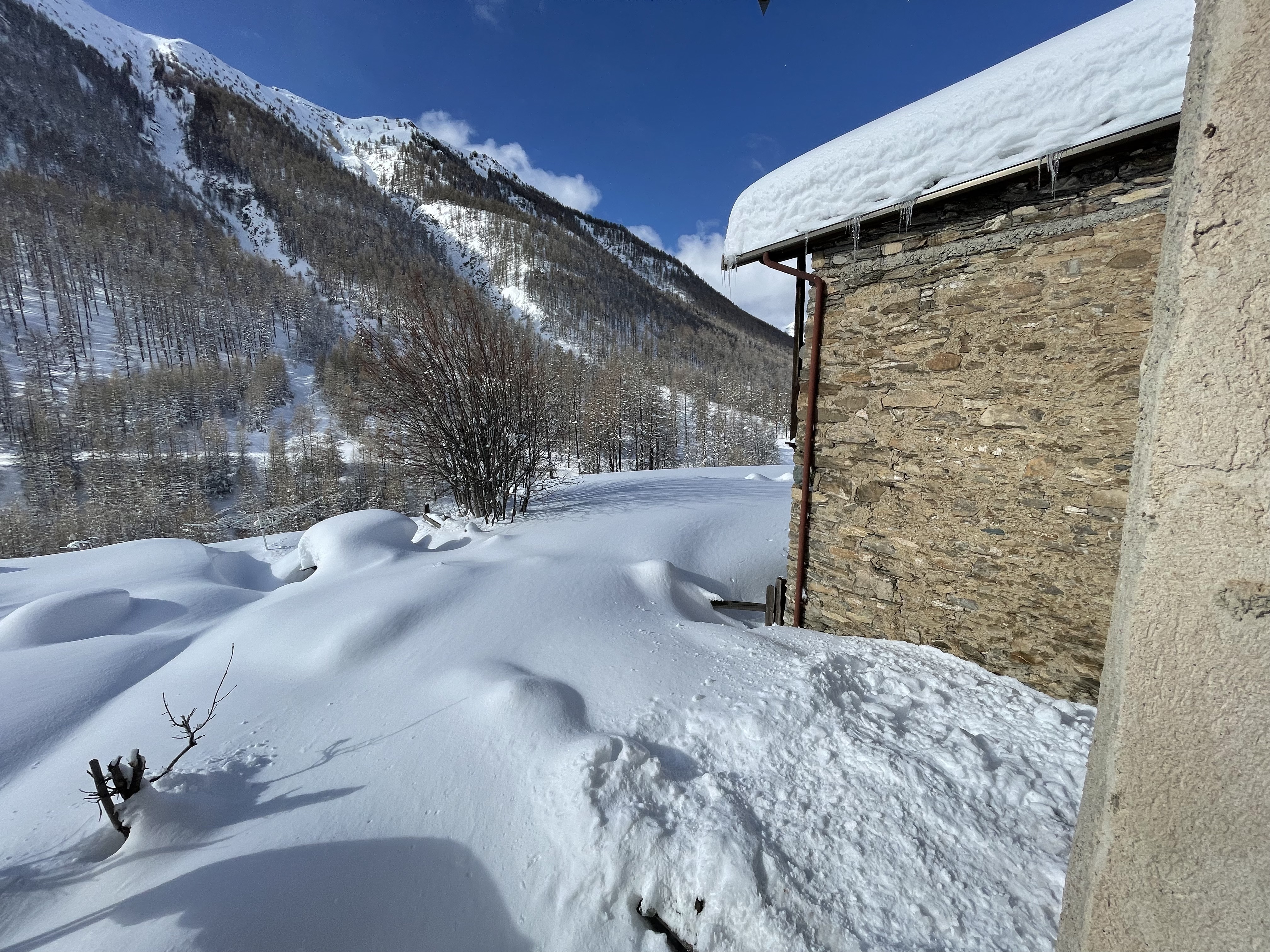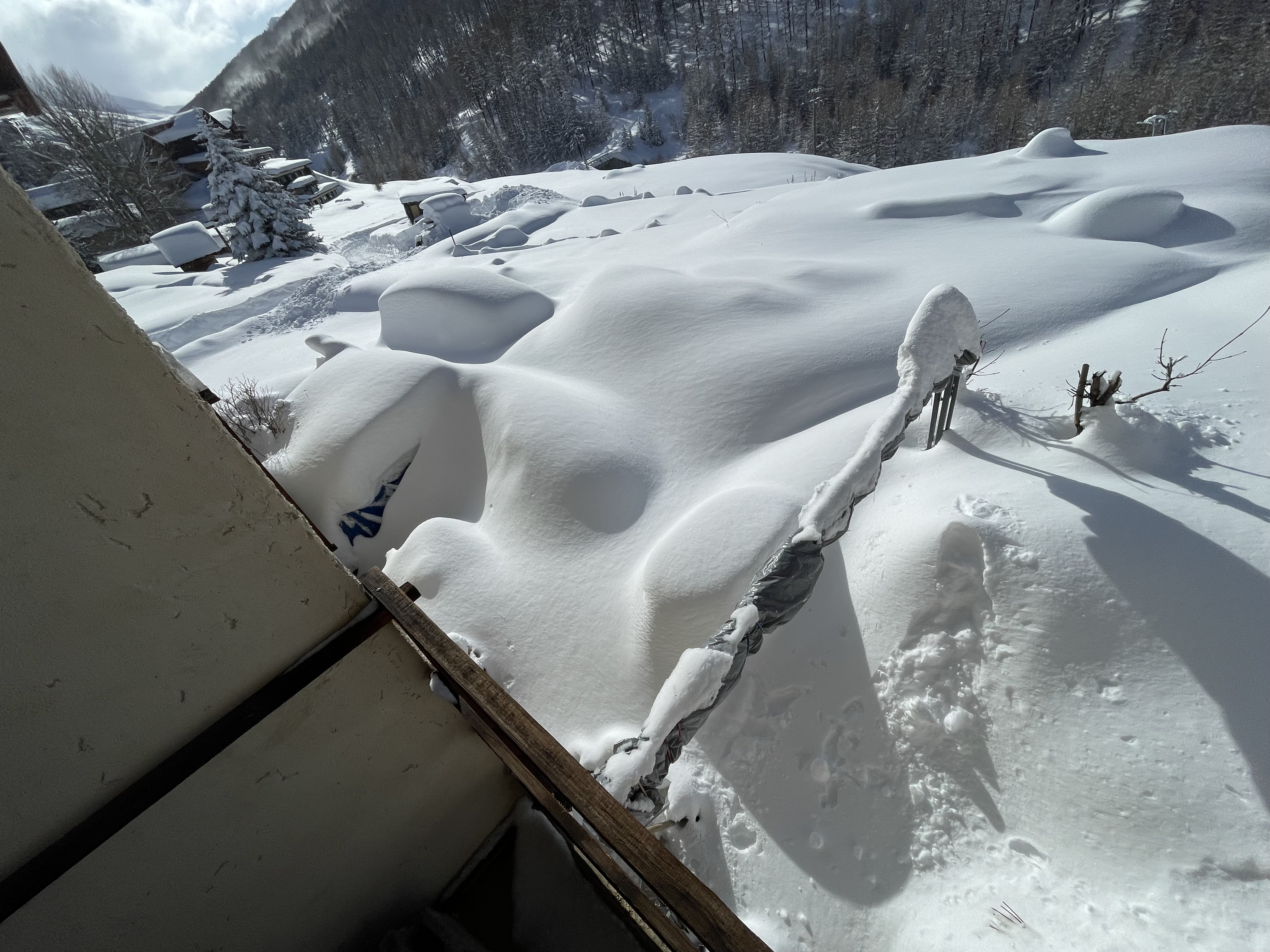 Certes, il y a des risques d'avalanches, mais il n'est pas nécessaire d'aller se frotter à Dame Nature ! Elle est tellement belle en ce moment que je ne vais pas vraiment écrire mais seulement vous montrez à l'aide de mes photos ce que nous avons eu comme quantité de neige ! Par endroit plus d'un mètre ! Pour l'eau c'était vraiment nécessaire !